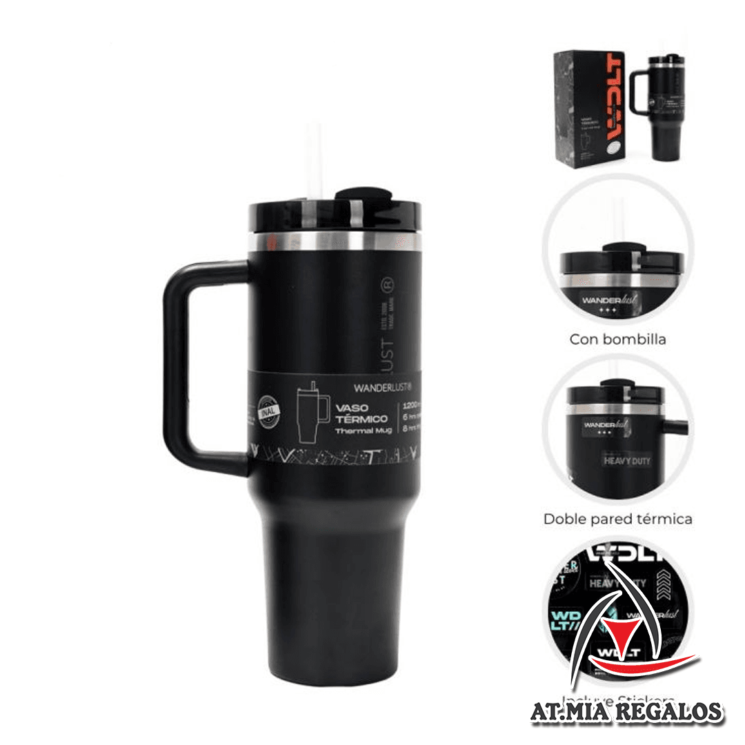 El Vaso Térmico WanderLust es un accesorio ideal para mantener tus bebidas a la temperatura perfecta durante largos períodos. Fabricado 100% en acero inoxidable con aislamiento térmico, asegura máxima durabilidad y conserva la temperatura tanto de líquidos fríos como calientes (6 horas caliente y 8 horas frío). Su diseño moderno y ergonómico incluye un asa resistente para facilitar el transporte, tapa hermética a rosca con opción para sorbete, y es completamente libre de BPA, garantizando un uso seguro